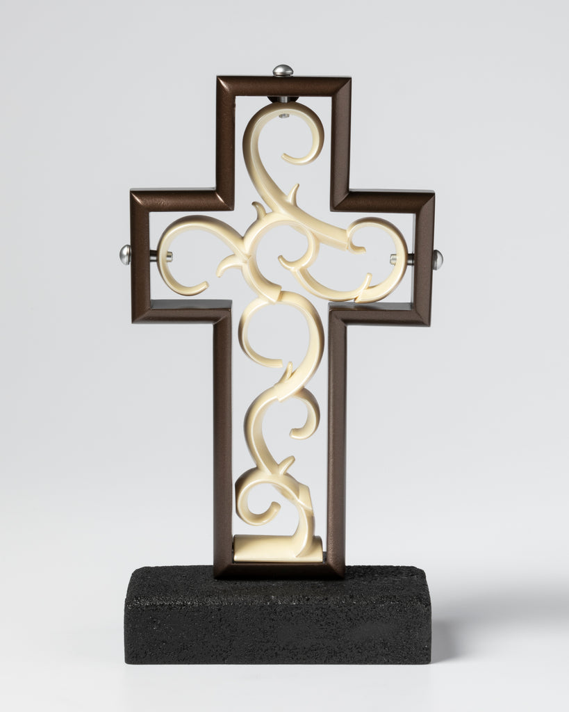 Each Unity Cross® is handcrafted and features a wooden outer cross, a stone resin inner cross, and a stone resin base. It also comes with both Silver and Gold Pegs.